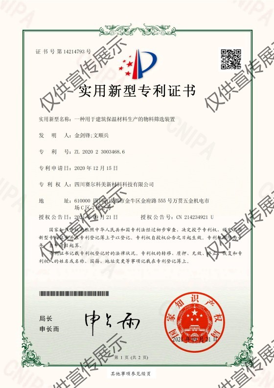 “賽爾科美”秉承“技術立企、以人為本,用科技創新推動綠色建筑全球化進程”的經營理念,始終把技術創新作為企業發展的核心競爭力,不斷追求研發深度,持續提升自主創新能力。公司憑借在綠色和生態環境材料領域超前的技術優勢,成為多項標準的參編單位、“中國建筑節能協會”會員單位、“中國絕熱節能材料協會技委會”會員單位、“四川省建筑土木學會”常務理事單位,及“四川省勘察設計協會”、“四川省建設科技協會”、“成都市土木建筑學會”、“四川省房地產協會”會員單位。